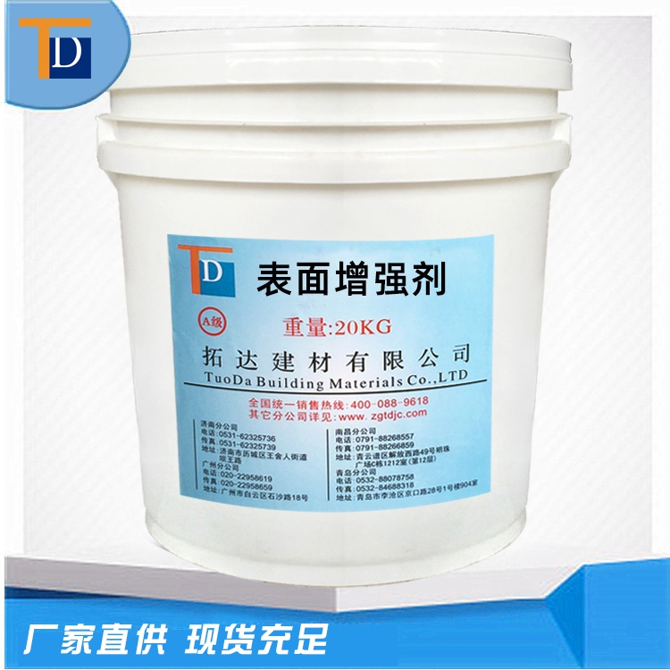 混凝土表面增强剂是一种高渗透型补强产品,产品通过渗透,其相关成分能快速地与混凝土中的游离钙发生化学反应,增加结构的致密性,使得混凝土表层形成一个坚如磬石的坚固实体,较大地提高混凝土结构表层的强度和耐磨性,从而得到封闭、坚固、耐磨、不起尘、抗水和大多数工业化学品侵蚀的表面,提高混凝土回弹强度,回弹值可提高30%—50%,不会像表面涂层随着使用而磨损,本品因为锁住孔隙,会使混凝土变得愈来愈硬,封堵性愈来愈好,强度低的问题。